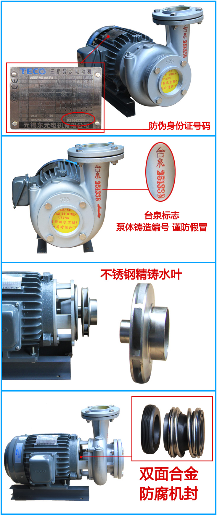 臺泉不銹鋼離心泵,泵體采用304、316精密鑄造成型,無砂孔問題。電機與泵體是一體形同軸設計,不僅僅保障了電機的穩固性,而且水泵占地面積小與噪音小的性能。水泵廣泛使用于電渡、涂裝、化工、PCB線路板、環保設備等方面。