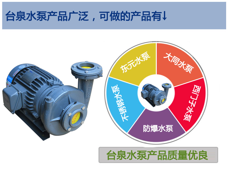 我司的臺泉水泵是及研發、生產、銷售、售后、一條龍的服務,杜絕了多個中間商的加價供貨現象,有效的控制了水泵的成本,把利益都讓給了廣大客戶,保障了客戶能享受到更實惠更合理的價格。